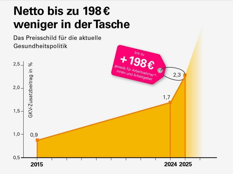 Unter dem Hashtag #WasFehltZahlstDu informiert der Dachverband über die bedrohlichen Entwicklungen bei der Finanzierung der Krankenkassen. So müssen im Jahr 2025 gesetzlich versicherte Arbeitnehmer im Schnitt voraussichtlich 198 Euro mehr an die Krankenkassen abführen als noch in diesem Jahr. Die Kritik des Verbandes richtet sich vor allem an den reformfreudigen Gesundheitsminister Karl Lauterbach (SPD), der allerdings bislang keinerlei Vorschläge zur Stabilisierung der Finanzen vorgebracht habe. Der Kostendruck aber könnte erheblich minimiert werden, „wenn die Bundesregierung endlich an den richtigen Stellschrauben drehen würde“, kommentierte die Verbandsvorständin Anne-Kathrin Klemm.